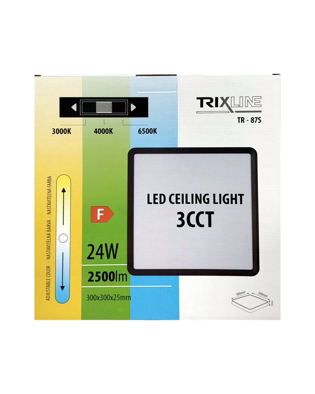 Bezpečnostní informace (PDF)LED stropné 3CCT svietidlo TR-87S - 24W 2500lm 30x30x2,5cm Trixline
