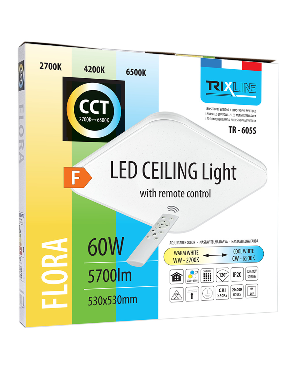 LED stropné svietidlo TR-605S - FLORA 60W 5700lm 53x53cm CCT + ovládač Trixline