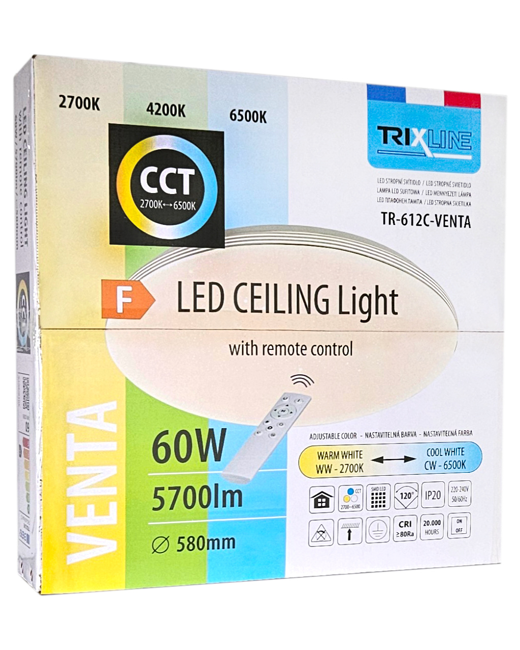 LED stropné svietidlo TR-612C - VENTA 60W 5700lm ø58cm CCT + ovládač Trixline
